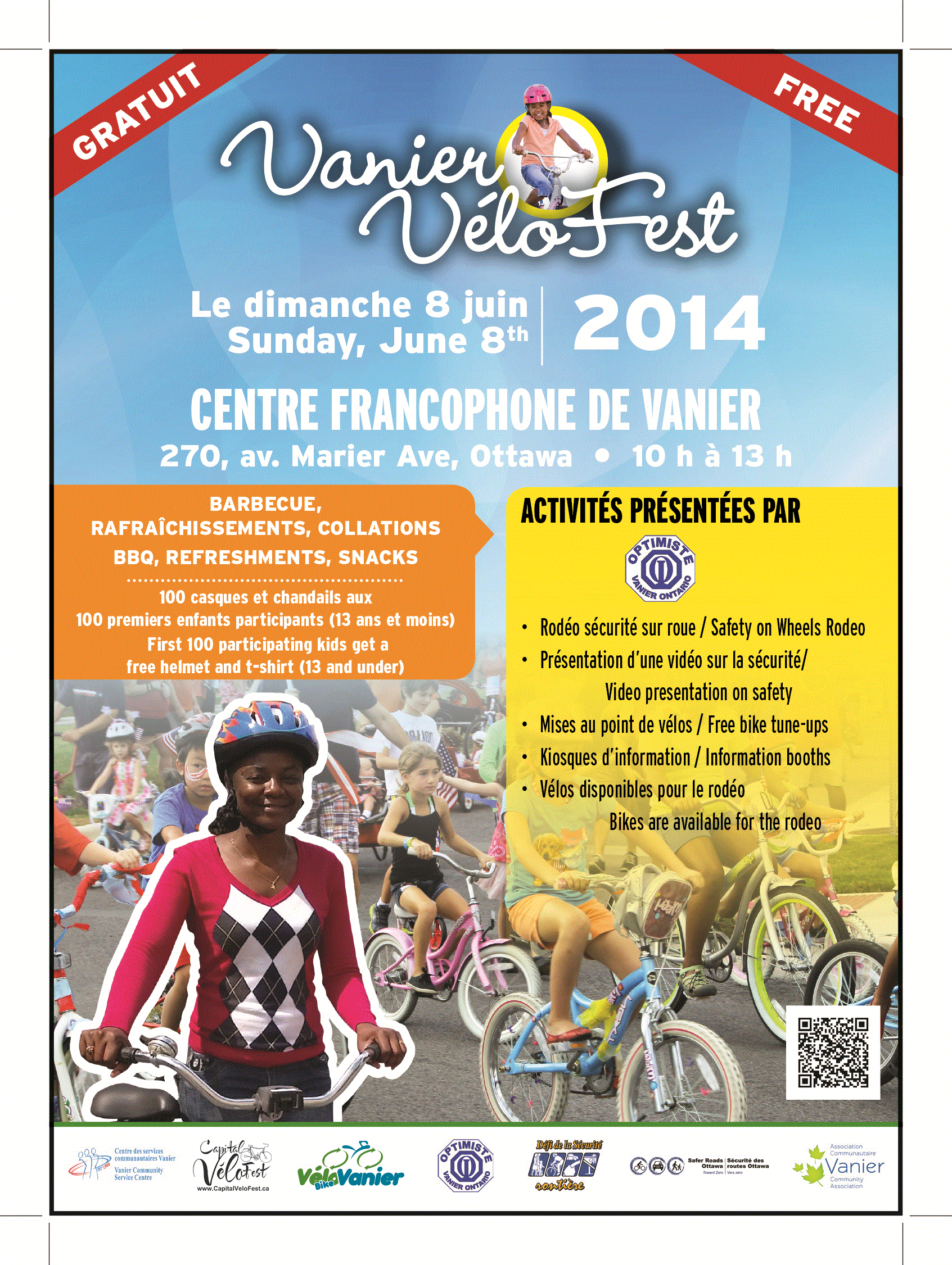 It’s summer, it’s Sunday… lets have a bike party! This week it’s the Vanier VeloFest, with a bike rodeo and give-aways of helmets and shirts to the first 100 participating kids (under 13). They’ll be a BBQ, food and heaps of fun. The Vanier VeloFest is free and held at the Centre Francophone de Vanier, 270 Marier Ave, from 10AM to 1PM.